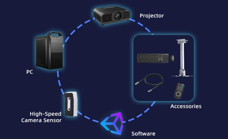 The high-speed motion sensor is the core component of the interactive golf system. With millisecond-level tracking, it accurately captures swing trajectory, impact timing, ball speed, and direction. Integrated with smart algorithms, it provides real-time analysis and feedback to ensure each swing is faithfully reproduced for an authentic golf experience.