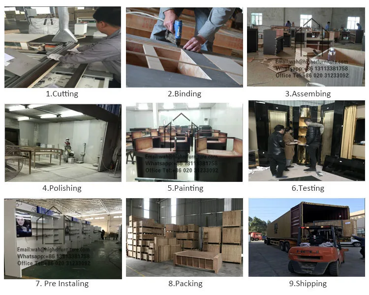| Material: | Plywood,MDF,solid wood,wood veneer,acrylic,stainless steel, tempered glass,LED lighting,marble,etc | ||